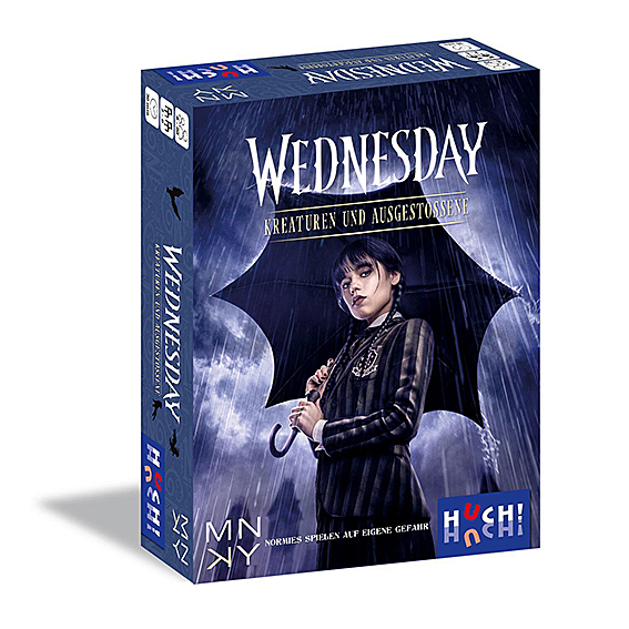 Mit Millionen Fans weltweit hat sich die düstere, scharfsinnige und eigenwillige „Wednesday Addams“ längst in die Herzen einer neuen Generation gespielt. Die Netflix-Serie Wednesday, produziert von Tim Burton, erzählt die Geschichte der kultigen Tochter der Addams Family, die an der geheimnisvollen Nevermore Academy nicht nur Freundschaften knüpft, sondern auch dunkle Geheimnisse lüftet. Pünktlich zur mit Spannung erwarteten 2. Staffel, die demnächst auf Netflix erscheint, bringt HUCH! mit „Wednesday – Kreaturen & Ausgestoßene“ das passende Spiel auf den Tisch – und damit jede Menge Atmosphäre, Taktik und morbiden Humor.