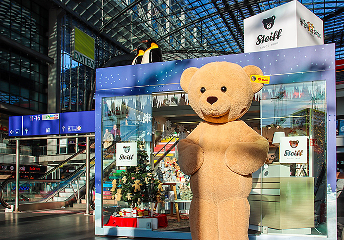 Mitten im Berliner Hauptbahnhof lädt der neue Steiff Pop-up Store im Erdgeschoss (Ebene 0) Reisende zu einem herzerwärmenden Shoppingerlebnis ein, eine Welt voller kuscheliger Plüschfreunde, kreativer Geschenkideen und festlicher Stimmung zu entdecken und sich selbst oder ihre Liebsten in der Weihnachtszeit und darüber hinaus zu überraschen.