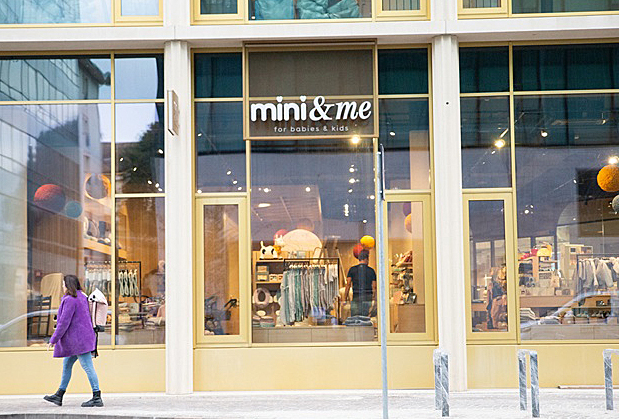 Die Außenfassade des neuen mini & me Store im Einkaufszentrum WaltherPark in der Bozener Innenstadt