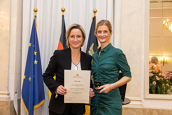 Die Ravensburger AG wurde von Wirtschaftsministerin Dr. Nicole Hoffmeister-Kraut mit der Wirtschaftsmedaille des Landes Baden-Württemberg ausgezeichnet. Die Ehrung fand am Mittwochabend im Rahmen einer feierlichen Veranstaltung im Marmorsaal des Neuen Schlosses in Stuttgart statt.