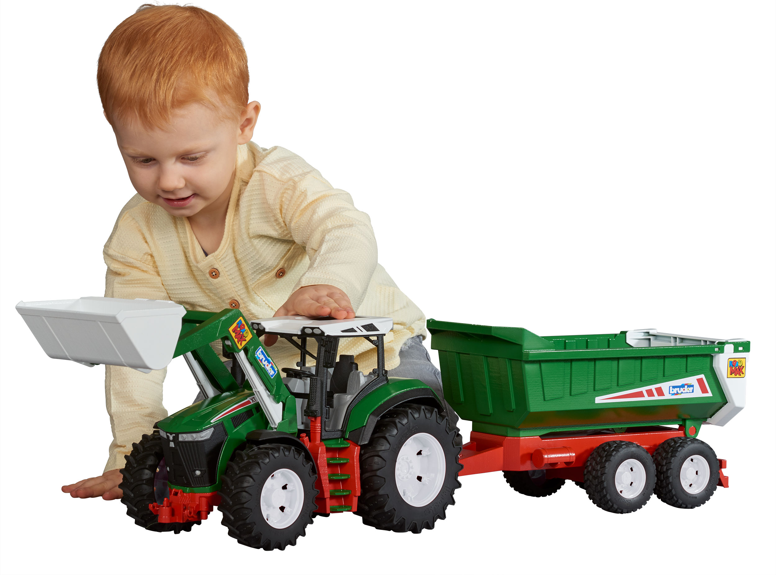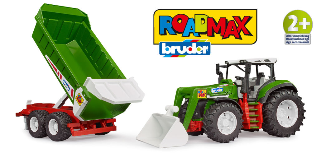 Mit der erneuerten Markenlinie „Roadmax“ von Bruder Spielwaren bekommt die ehemalige „2Plus-Linie“ für Kinder ab zwei Jahre ein neues Zuhause. Im Juli wird es zu dieser Serie einen neuen Traktor mit Frontlader und Kippanhänger geben, einen Bagger, einen Radlader und einen Kipplaster gibt es bereits.