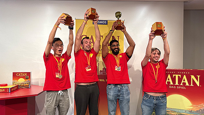 Am 5. und 6. April 2025 trafen sich die besten Catan Spieler*innen der Welt in Stuttgart, um die Weltmeisterschaft auszutragen. Dabei kämpften Brettspielstrategen aus 60 Ländern um den Titel. Kohulan Narendran aus Kanada setzte sich gegen die internationale Konkurrenz durch und holte den begehrten ersten Platz. Damit qualifiziert er sich automatisch für die nächste Weltmeisterschaft. Die Catan WM zeigt, dass sich das deutsche Kult-Brettspiel Catan längst zum internationalen Phänomen entwickelt hat. Die stetig wachsende Catan Begeisterung weltweit, spiegelt sich auch in der Teilnehmerzahl des diesjährigen Turniers wider: Mit 90 Spielern aus 60 Ländern war diese so hoch wie noch nie.