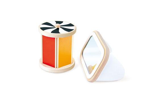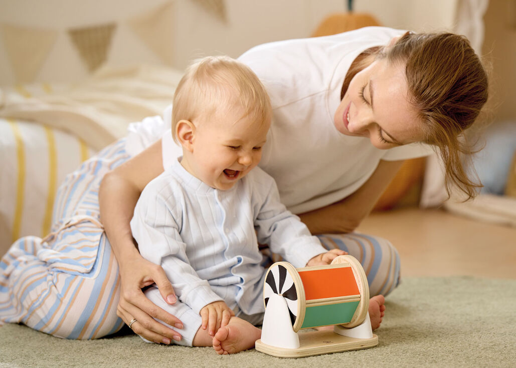 Die drehbare Trommel mit Spiegel ist ein kompaktes 2-in-1-Babyspielzeug, das wichtige Entwicklungsschritte unterstützt – vom Greifen über das Krabbeln bis hin zur Selbstwahrnehmung. Wird die Trommel in Bewegung gesetzt, ertönen Rasselgeräusche, die das Hörvermögen anregen und die sensorische Wahrnehmung fördern. Auf die Seite gedreht, können Babys ihr Spiegelbild erkunden. Die Trommel lässt sich abnehmen