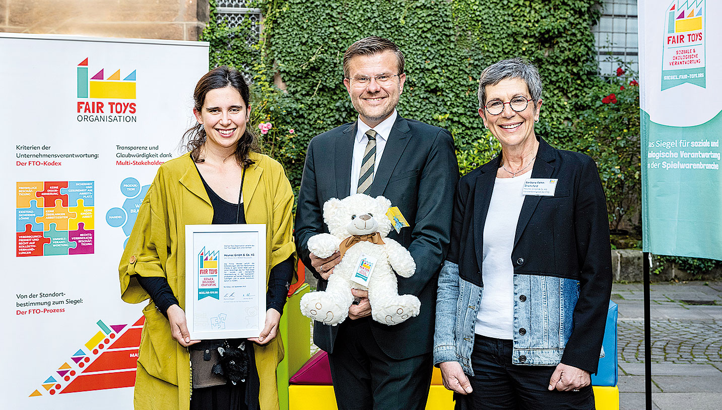 The Fair Toys Organization (FTO) has awarded a seal for social and ecological responsibility in toy production for the first time. FTO member companies Heunec and Plasticant Mobilo are now allowed to display the seal on their products.