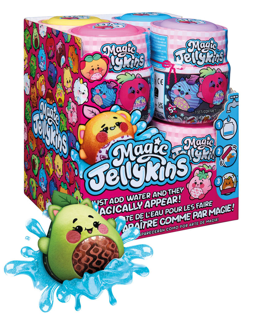 „Sammelspaß im Glas: Die Magic Jellykins von Spin Master sind da. Noch nie waren Marmeladengläser so lustig und Obst so magisch! Jedes Kind weiß, dass man aus Obst Marmelade machen kann, aber die frechen Früchtchen Magic Jellykins stellen jetzt alles auf den Kopf. Sie verwandeln ihr Marmeladenglas in ein magisches Portal: Ein bisschen Wasser dazu – und plötzlich erscheint ein farbenfroher, squishy Plüschcharakter. Mehr als 20 Überraschungsfiguren warten darauf, Kinder ab vier Jahren zum Staunen zu bringen und ein einzigartiges, multi-sensorisches Unboxing-Erlebnis zu bieten.“