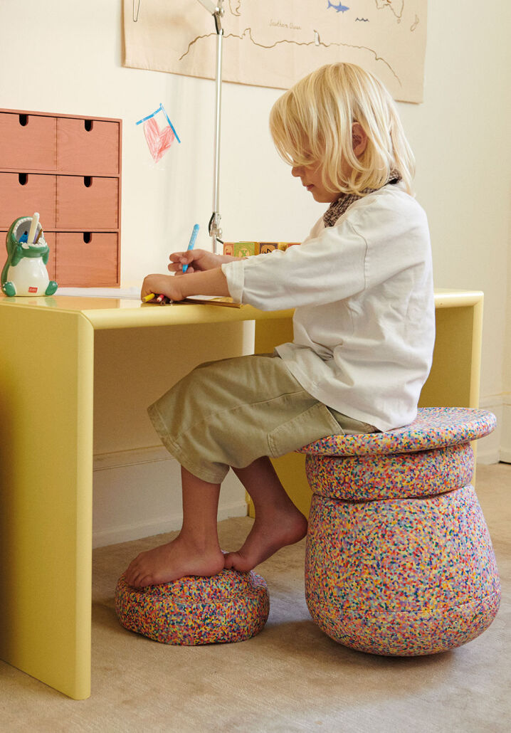 „Ein Hocker der mitwächst: Der „Dynamic“ von Stapelstein. In Kombination mit den Original Elementen und dem Board lässt sich mit der Base ein beweglicher Sitz stapeln, der bis ins Erwachsenenalter hält und auf spielerische Weise mehr Bewegung in den Alltag integriert. Neben den vielen kreativen Einsatzmöglichkeiten, wie etwa als Stauraum, eignet sich die neue Base durch ihre ikonische Form und die Farbenvielfalt auch als Designobjekt für jeden Wohnraum oder sogar fürs Büro.“