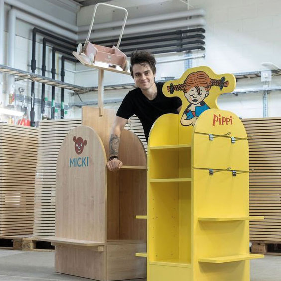 Doch das ist nicht alles. Micki unterstützt den Handel mit hochwertigen, individuell gestalteten PoS-Lösungen darunter auch aufmerksamkeitsstarke Produktdisplays. Hergestellt werden diese in Schweden. Weiterhin bietet Micki inspirierende, spielerische Flächenkonzepte für Händler, darunter kindgerechte Spielmöbel wie Züge, Boote oder Küchenzeilen. Gefertigt werden sie in der eigenen Manufaktur im schwedischen Gemla. Durch die Kombination aus durchdachter Präsentation und interaktiven Spielflächen unterstützt Micki den Handel dabei, einladende Erlebnisräume zu schaffen, die zum Verweilen, Entdecken und Wiederkommen einladen. „Mit den Spielmöbeln schaffen wir wertvolle Begegnungsräume, die echten Mehrwert bieten. Sie sorgen für ein starkes Gesamterlebnis. Die Kinder spielen ruhig, und Familien fühlen sich willkommen“, sagt Mats Jäderberg vom Centermanagement des Einkaufszentrums Grand Samarkand in Växjö, Schweden.