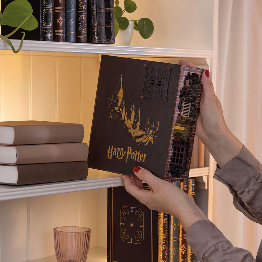 Die dritte Serie ist vor allem eines: eine astreine Idee! Denn diese Produkte sind aus Holz gefertigt. Hinter der Submarke „Tiny Adventures“ verstecken sich Bausätze nach Vorbildern mit Rädern, aber auch kleine Dioramen. Unter anderen welche, die Szenarien von „Harry Potter“ nachzeichnen und gleichzeitig als Buchstütze dienen können. Der Kreative aus der Henschelstraße in Bünde: „Wir sind schon sehr stolz, dass wir hier einen solchen erstklassigen Lizenzpartner überzeugen konnten. Das hat den Produktstart extrem beschleunigt.“ Wie bei vielen Produkten für die Kidults geht es hier aber auch um neue, wichtige Vertriebskanäle. Pasternok: „Wir sind jetzt auch im Buchhandel bei Hugendubel und Co gelistet. Vielleicht verkaufen wir dort auch bald Autobausätze. Wer weiß?“