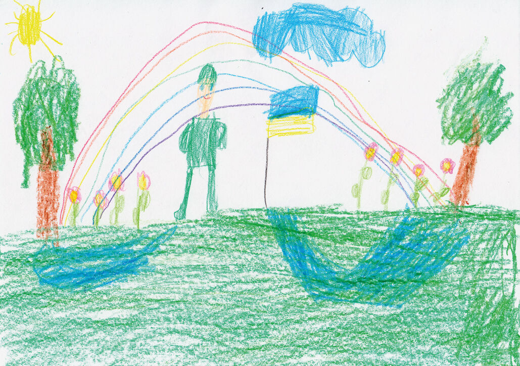 Tschernihiw, Ukraine – Alisa stellt sich eine helle und glückliche Zukunft vor, die möglich wird, wenn ihr Vater aus dem Krieg zurückkehrt und Wasser aus dem Boden emporsteigt.