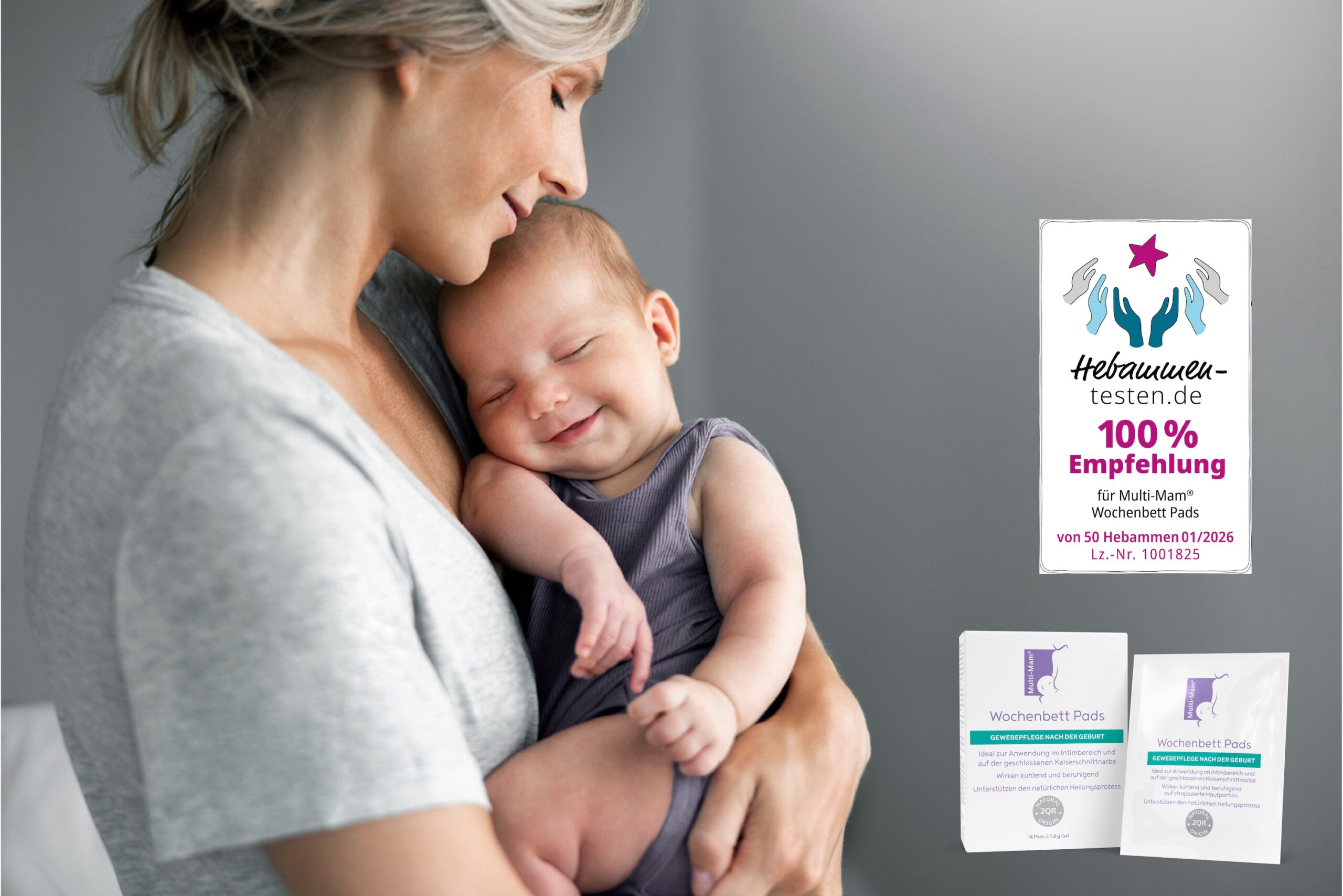 Die Qualität und Praxistauglichkeit der Multi-Mam Wochenbett-Pads wurden im Rahmen eines umfangreichen Produkttests bestätigt. Im Zeitraum von November 2025 bis Januar 2026 testeten 50 Hebammen die Pads über vier Wochen hinweg gemeinsam mit den von ihnen betreuten frisch gebackenen Müttern. Bewertet wurden dabei insbesondere die Anwendung, das allgemeine Handling, der Tragekomfort sowie der kühlende und beruhigende Effekt.
