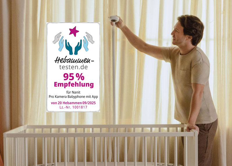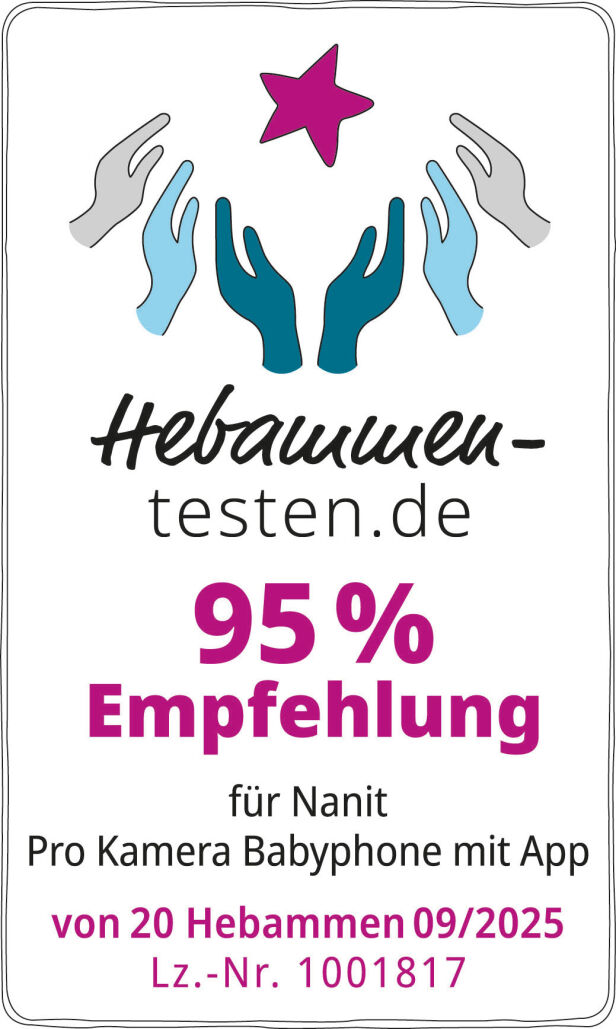 Im Zeitraum von Juli bis September 2025 wurde es von 20 Hebammen über mehrere Wochen im echten Familienalltag getestet, mit einem klaren Ergebnis: 95 Prozent empfehlen das Nanit Pro Kamera Babyphone mit App.