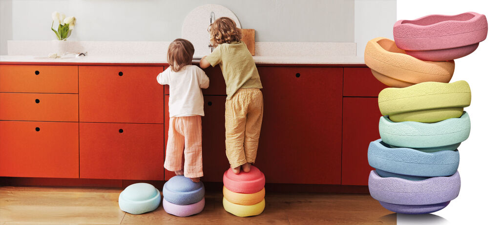 „Stapelstein ist das Geschenk, das mitwächst: Schon ab einem Jahr geeignet, begleitet es Kinder über viele Entwicklungsphasen hinweg. Durchdachtes Design und schöne Farben standen bei der Entwicklung der Stapelstein Elemente im Mittelpunkt. Zeitlos in ihrer Optik, werten die Elemente Wohnraum und Garten auf, sodass sie nicht verstaut werden müssen und jederzeit zur Bewegung einladen.“