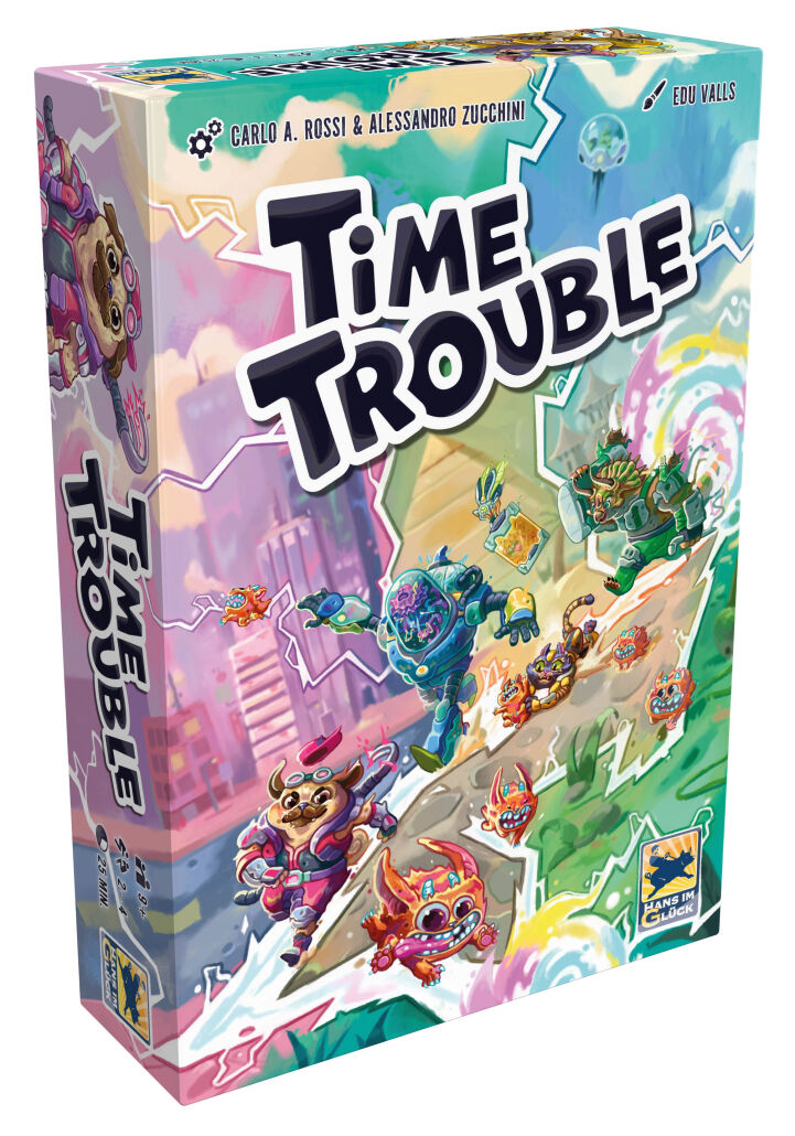 Immer müssen die Fluffys gefangen und ins Ziel gebracht werden. Der Mechanismus mit den transparenten Karten birgt Tücken. Der Zeitdruck erschwert das Programmieren des Ablagestapels zusätzlich. Vielleicht sollte man eine erste Partie ganz ohne Timer spielen? „Time Trouble“ ist modular angelegt. Es gibt insgesamt sieben Level, die fortschreitend anspruchsvoller werden. Es ist sogar möglich, bei einer Übererfüllung der Zielaufgabe Sterne zu sammeln, die als Boni ins nächste Level mitgenommen werden können. Das sind echte Vorteile. Jeder will die Kampagne durchspielen, was am besten mit einer möglichst homogenen Gruppe gelingt. Das geschickt ineinander verwobene Spielgeschehen wird durch eine sehr umfangreiche Spielregel (16 Seiten) „eingekauft“. Vieles ist allerdings themenlogisch und unterstützt den Mechanismus. So fällt die Umsetzung spielerfahrenen Freunden des analogen Spiels nicht allzu schwer. Spielerfahren sollte man aber auch deshalb sein, um die angedeuteten Möglichkeiten aber auch die drohenden Gefahren, die versteckt im Spielsystem verankert sind, mit Weitsicht zu erkennen. Anders wird keine Gruppe den Ärger bei diesen Zeitreisen meistern können.