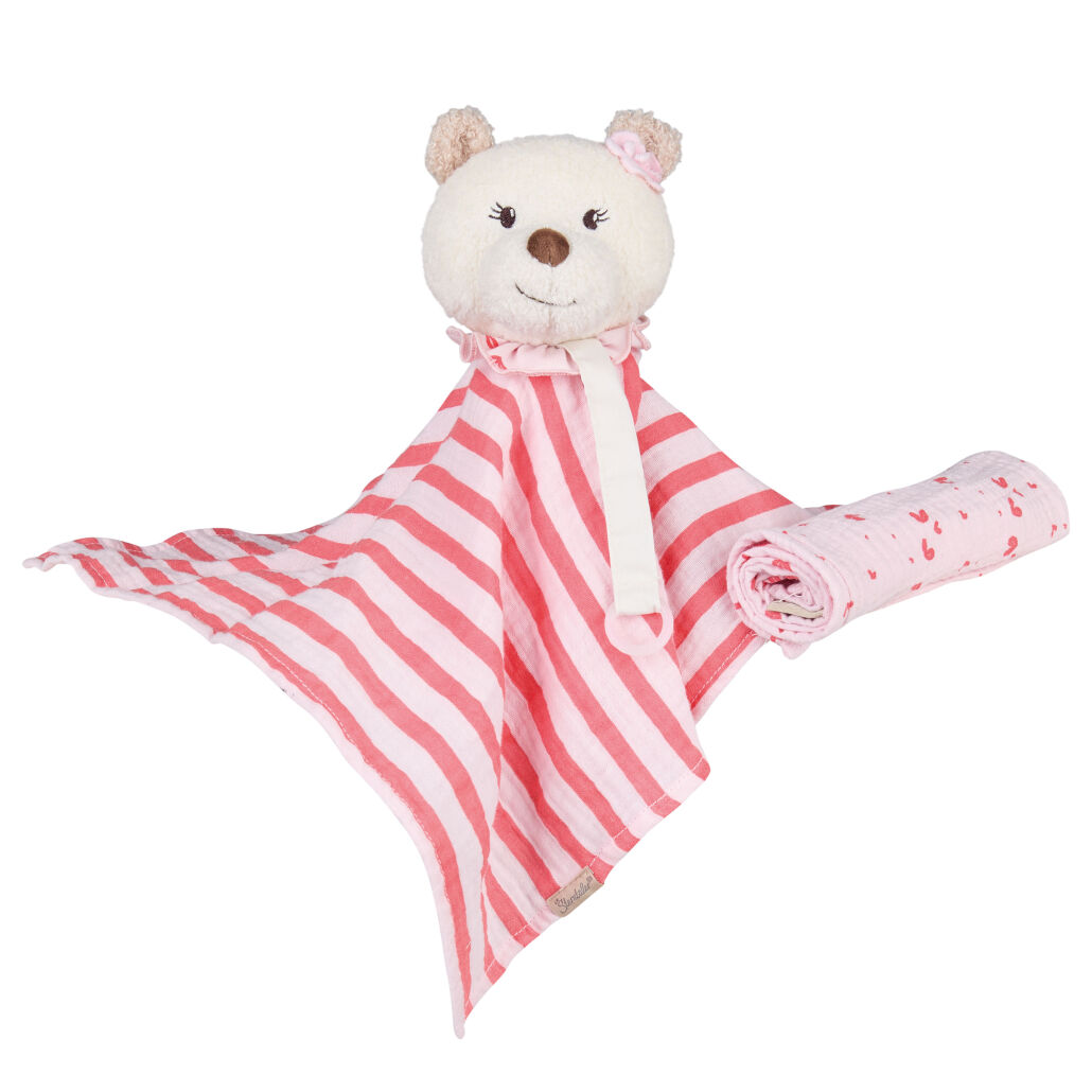 Gerade in den ersten Monaten ist es praktisch, alles Wichtige griffbereit zu haben. Das Träumli-Set von Sterntaler vereint gleich mehrere Funktionen in einem liebevollen Begleiter. Die Schmusetücher aus weichem Flausch sorgen für Geborgenheit, während das integrierte Schnullerband mit Klettverschluss und Silikonring den Schnuller sicher befestigt. Besonders praktisch für unterwegs: Ein separates, weiches Musselintuch ist ebenfalls dabei – ideal, wenn das Baby einmal spucken sollte. So ist in der Wickeltasche alles schnell zur Hand.