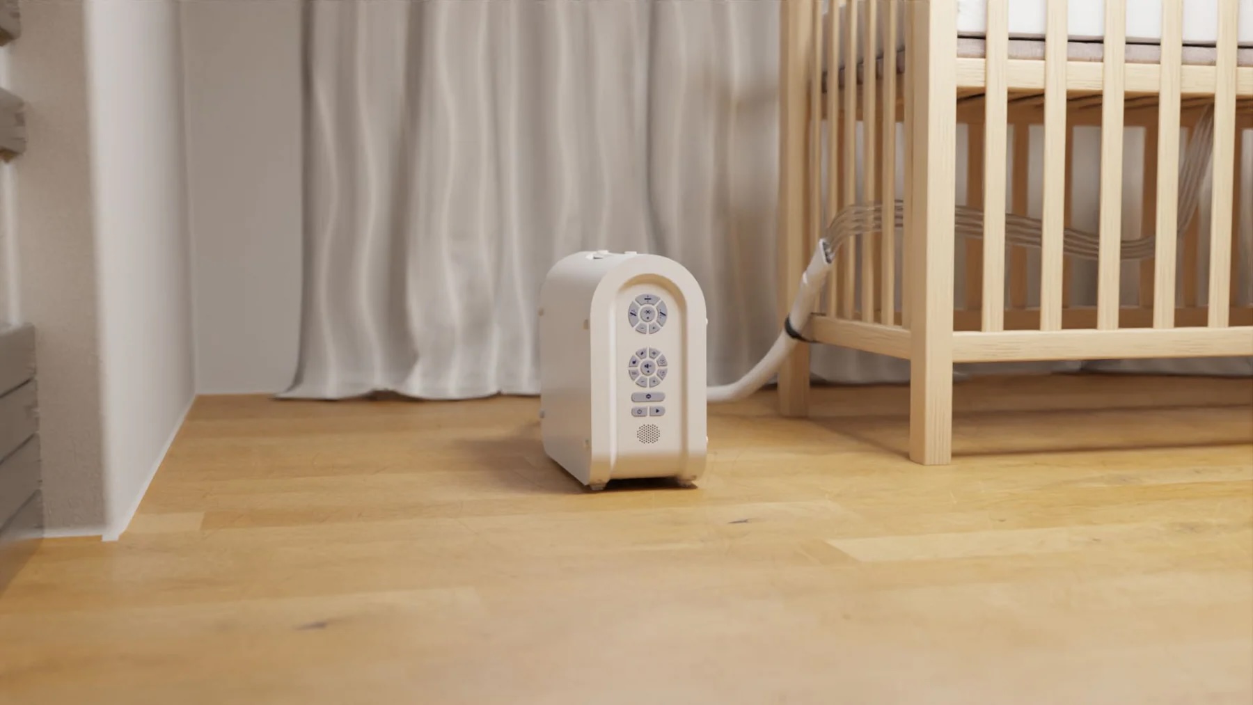 Der Womy Sleeper besteht aus der Matte und dem Breather. Die Matte ist eine dünne Auflage, die unter die Matratze des Babys gelegt wird. Der Breather, der außerhalb des Bettchens positioniert wird, „atmet“ Luft in einem beruhigenden Rhythmus in die Mat hinein und wieder heraus und erzeugt so eine sanfte Wiegebewegung, als würde das Baby auf der Brust eines Elternteils liegen. Mit beruhigenden Klängen wie Herzschlag oder Meeresrauschen hilft er Babys, sich sicher und geborgen zu fühlen und schneller einzuschlafen. Der Womy Sleeper lässt sich leicht installieren und entweder über die Tasten am Breather oder über eine sehr benutzerfreundliche App bedienen.