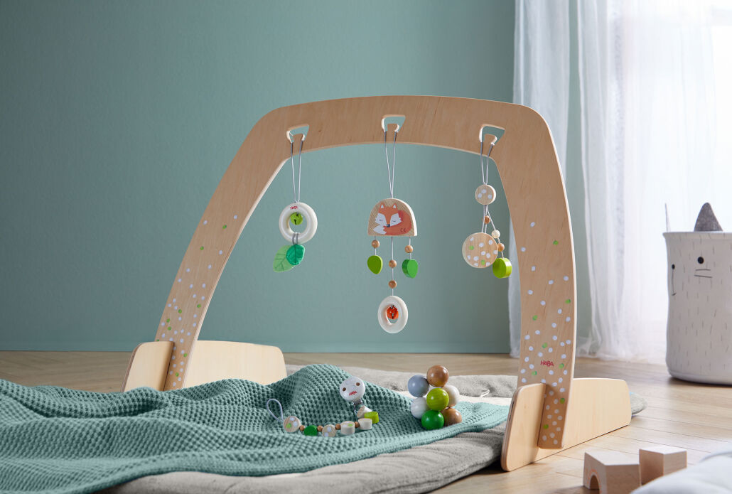 Schon früh wollen Babys die Welt entdecken, reagieren neugierig auf akustische und optische Reize. Das neue Baby Spiel-Set „Pure“ unterstützt sie in diesem Entdeckerdrang. Die verschiedenen Elemente aus Holz animieren zum Schauen und Greifen, das Zugreifen in Rückenlage fördert Aufmerksamkeit und Handmotorik. Das Set beinhaltet einen Spielbogen, drei Hängefiguren, eine Schnullerkette und einen Greifling.