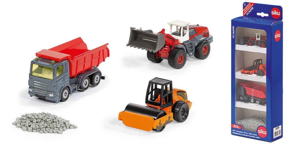 Fünf neue Geschenksets aus unterschiedlichen Themenwelten bringt siku im ersten Halbjahr 2022 auf den Markt. Achtung Baustelle heißt es mit dem Geschenkset Straßenbau. Ein grauer Muldenkipper, ein Liebherr-Radlader und eine Straßenwalze sorgen dafür, dass auch Spielstraßen regelmäßig gewartet werden können. Zum Set gehört auch graues Granulat, das sich mit dem Radlader in den Muldenkipper laden lässt.