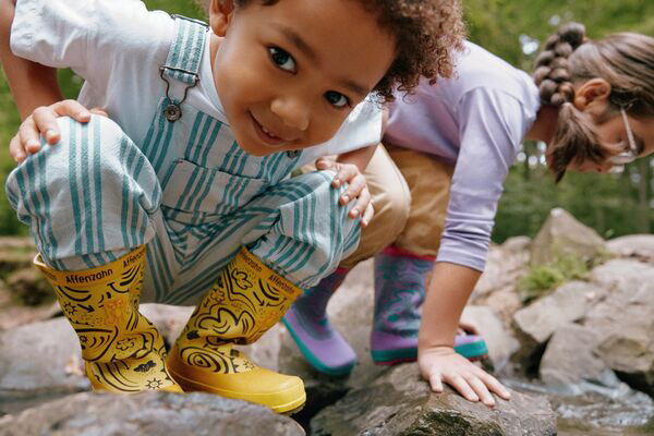 Einfach mal aus Übermut in eine Pfütze springen – dieses Splish-Splash-Gefühl macht aus jeder Regenzeit ein Abenteuer. Mit den neuen Gummistiefeln von Affenzahn werden aus grauen Tagen farbenfrohe Lieblingsmomente. Dank Naturkautschuk bleiben kleine Füße zuverlässig warm und trocken. Eine Wasserstandsanzeige zeigt kleinen Wasserfreunden spielerisch, wie tief es gehen darf und Reflektoren sorgen für gute Sichtbarkeit. Dank Einstiegsschlaufe und Rechts-Links-Unterscheidung ist das Anziehen kinderleicht: Also ab ins Abenteuer – und dem Wetter trotzen!