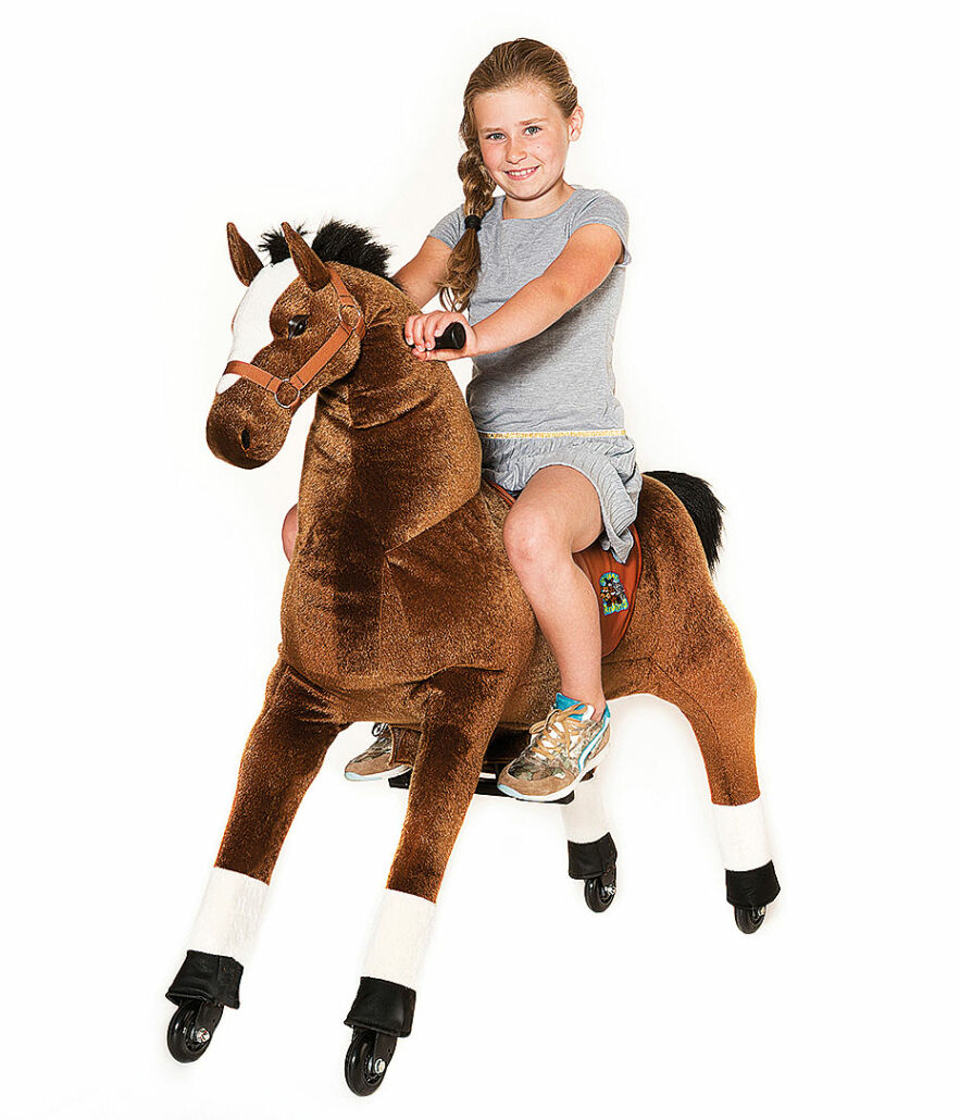 Allein durch die Muskelkraft ihrer kleinen Reiter bewegen sich die Pferde, Löwen, Tiger, Zebras, Elefanten, Esel, Elche und Einhörner von Animal Riding lautlos und umweltfreundlich fort. Jetzt kommt eine überarbeitete Modellreihe der plüschigen Reittiere auf den Markt. Die Neuen verfügen über einen verstärkten Stahlrahmen mit Gummidämpfern, ihr Fell-Design wurde überarbeitet. Aus hygienischen Gründen wurden die Stoffsättel durch Sättel im Leder-Look ersetzt. Außerdem wurden die Verpackungsgrößen reduziert. Die ersten Modelle der neuen Reihe sind ab sofort erhältlich, der Rest kommt im Herbst.