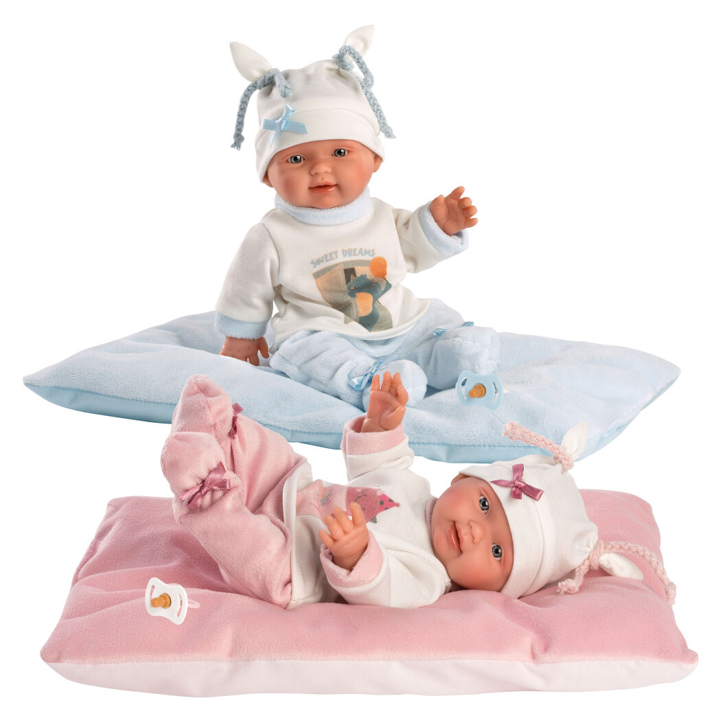 Neu im Sortiment sind die 26 Zentimeter großen Babypuppen Bebito und Bebita. Ihr kompletter Vinylkörper macht sie besonders robust und pflegeleicht. Ob Bebito im hellblauen oder Bebita im rosafarbenen Outfit – beide sorgen für ein realistisches und emotionales Spielerlebnis. Dank der kompakten Größe eignen sie sich ideal für Kinder ab drei Jahren. Beide Puppen werden inklusive Kuschelkissen und Schnuller geliefert.