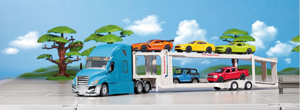 siku präsentiert 2022 einige der kultigsten Flitzer, legendärsten Filmikonen und stärksten Highwayhelden als detailgetreue Spielfahrzeuge in kleinem Maßstab: der Nissan GT-R Nismo, der Aston Martin DBS Superleggera und der Freightliner Cascadia. Letzterer fällt mit seiner Miami Blue-Lackierung und glänzenden Chromelementen auf, kommt auf drei Achsen daher und kombiniert im Inneren modernste Technik, Effizienz und Sicherheit.