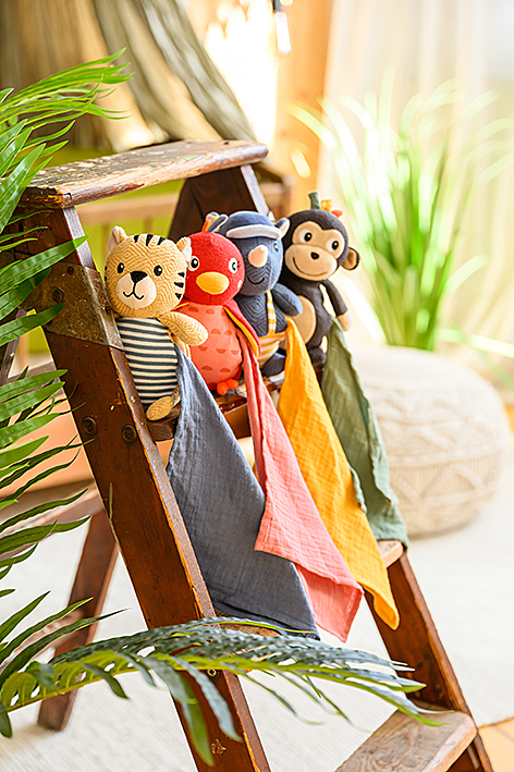 Mit der „Little Wonder“-Kollektion von Die Spiegelburg wird es wild und kuschelig! Tiger, Affe, Nashorn und Paradiesvogel warten darauf, verschenkt, geknuddelt und entdeckt zu werden. Die liebevoll gestalteten Tiere sprechen alle Sinne an – sie knistern, rasseln und fühlen sich wunderbar weich an.