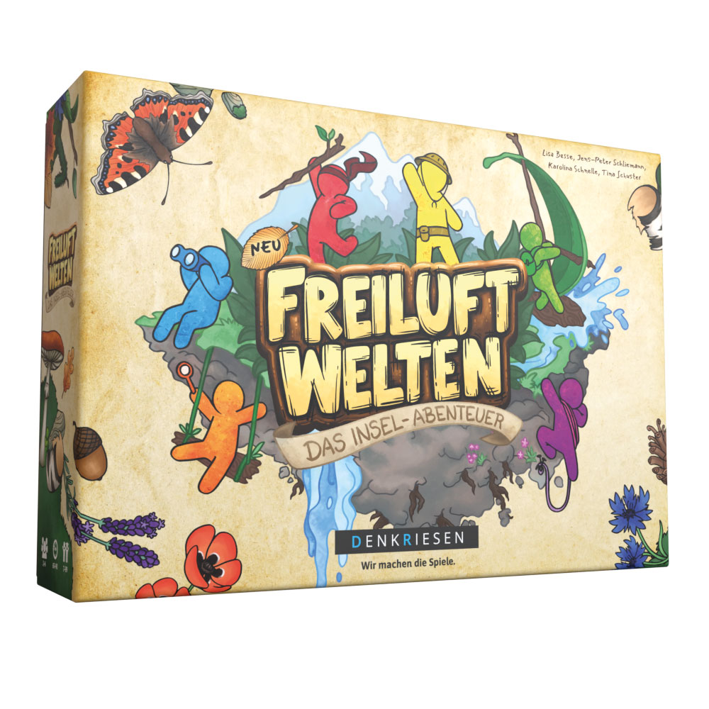 Raus in die Natur – hinein ins Abenteuer zu Hause. „Freiluftwelten“ von Denkriesen lädt zwei bis sechs Spieler ab sieben Jahren ein, gemeinsam aus Blättern, Steinen, Zweigen und vielem mehr eine ganz besondere Inselwelt zu erschaffen. Geheime Aufträge verwandeln die gesammelten Materialien in Boote, funkelnde Schätze oder spektakuläre Vulkane. So entsteht eine fantasievolle und immer wieder neue Inselwelt. Ein neues Erlebnis, das es so noch nie gab: ein Abenteuer, das direkt in der Natur entsteht.
