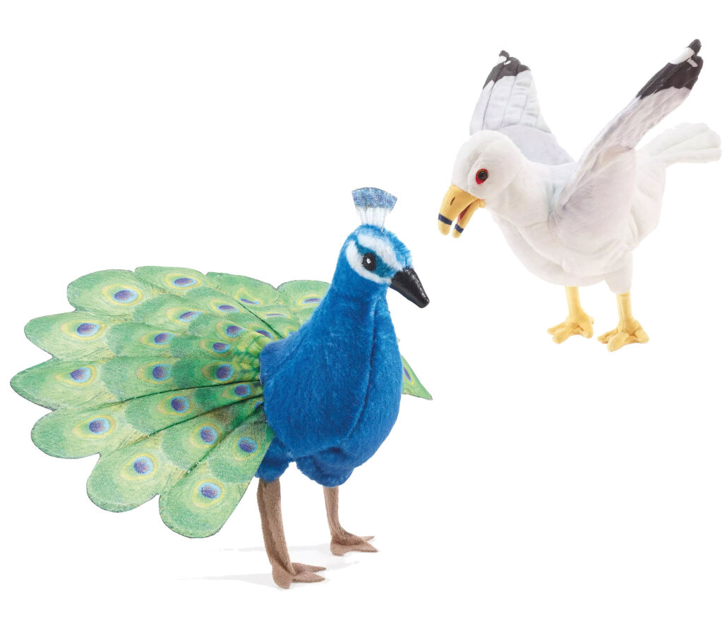 Von niedlichen Haustieren bis hin zu faszinierenden Wald- und Bauernhoftieren bietet Folkmanis eine breite Palette an Handpuppen für Kinder und Erwachsene. Sowohl auf See als auch an Land landet die neugierige Möwen-Handpuppe bereit zur Futtersuche. Mit beweglichem Schnabel und flatternden Flügeln erwacht ihr frecher Charakter im Spiel zum Leben. Die Fingerpuppe Mini Pfau ist ein wunderschöner Vogel in der Hand, der mit einem sanften Schwung seines Schwanzes stolz sein farbenfrohes Federkleid präsentiert.