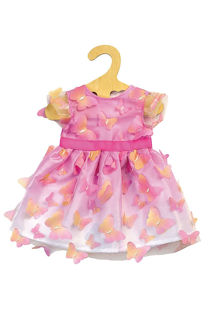 In dem Puppenkleid „Miss Butterfly“ von Heless fühlt sich jede Puppe und jedes Plüschtier anmutig und elegant wie ein kleiner Schmetterling. Auf Stoff und Tüll mit pastellrosa Farbverlauf tanzen viele zarte Schmetterlinge fröhlich hin und her. Das
