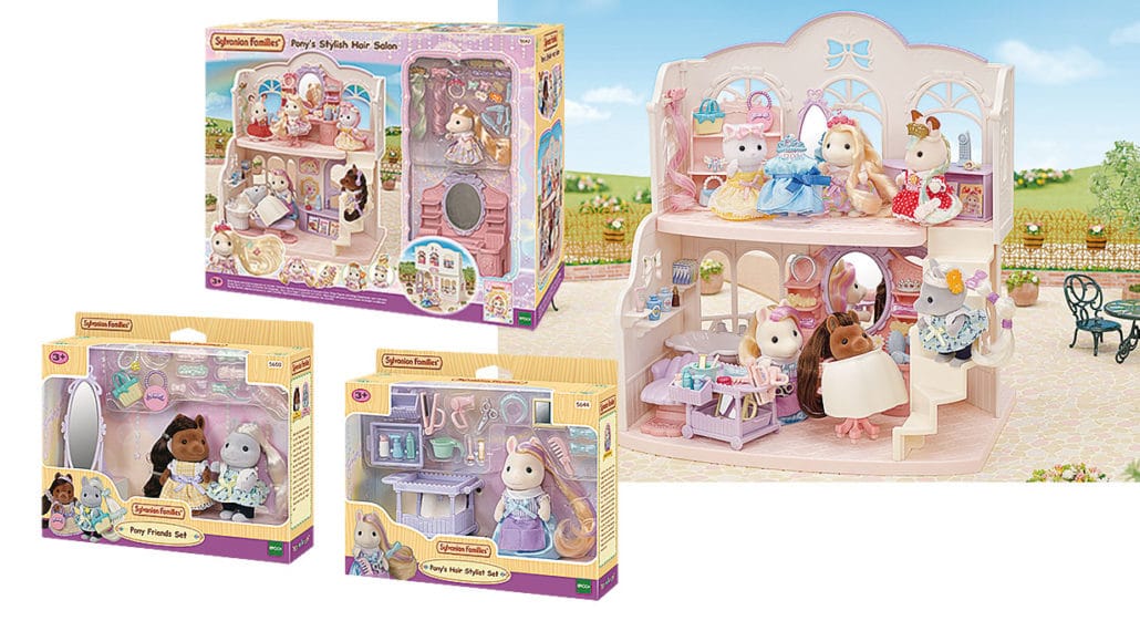 Ab sofort ziehen die süßen Sylvanian Ponys in Sylvanian Village von Epoch Traumwiesen ein und bringen einen schicken Friseursalon mit. Im Set enthalten sind unter anderem der zweistöckige Friseursalon, die Pony Mädchen Figur Sally mit langen Haaren, ein Schminktisch mit Spiegel, ein Waschbecken mit Stuhl, Friseurzubehör und noch vieles mehr.