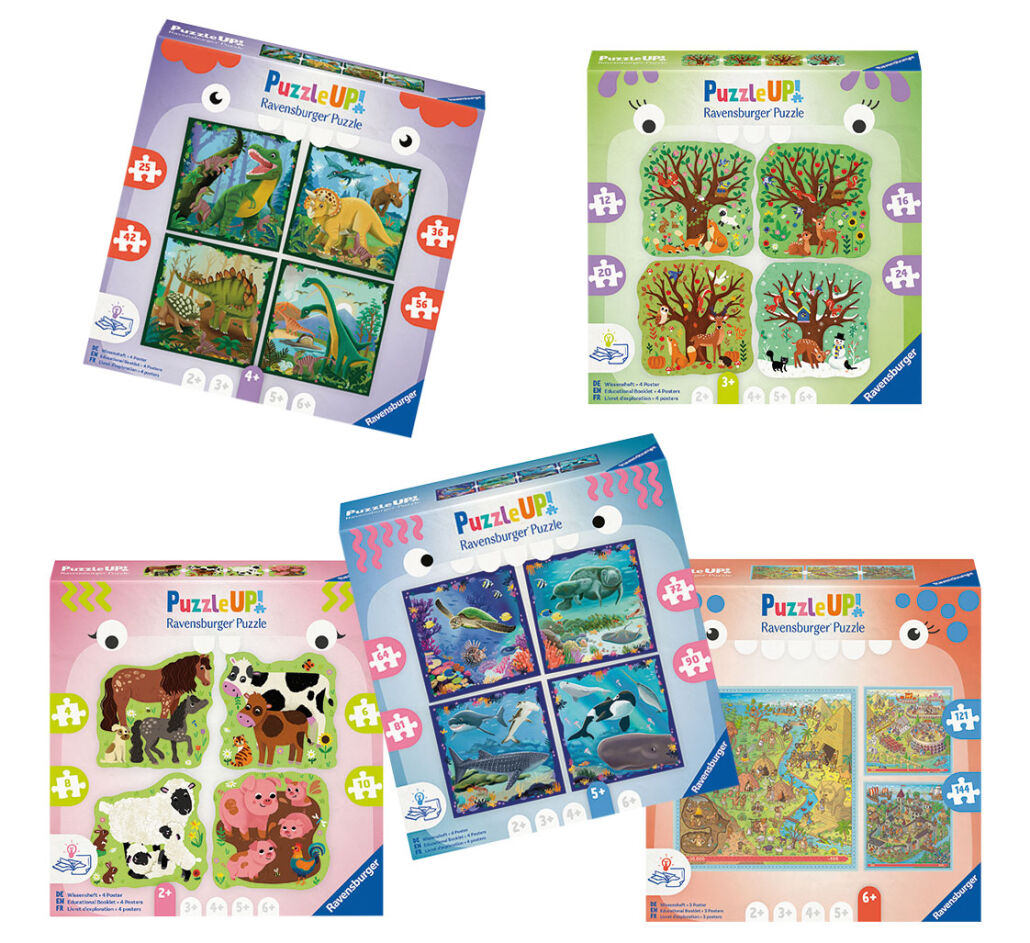 Puzzle Up! von Ravensburger fördert Kinder ab zwei Jahren in wichtigen Entwicklungsphasen. Mit altersgerechten Motiven wie Bauernhoftieren, Jahreszeiten oder Dinosauriern wachsen die Puzzles mit den Fähigkeiten der Kinder: Die Teilezahl steigt von Puzzle zu Puzzle. Ein beiliegendes Wissensheft bietet spannende Infos und kreative Spielideen. Ob Feinmotorik, Konzentration oder Wissen – diese Lernpuzzles machen Fortschritt spielerisch und abwechslungsreich. Perfekt für kleine Entdecker!