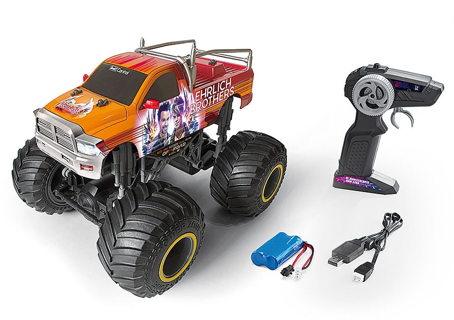 Die Fans der Ehrlich Brothers sind heiß auf Tricks im Großformat. Mit den Revell Control RAM 3500 Ehrlich Brothers Monster Trucks in zwei Maßstäben kommt das Show-Feeling nun nach Hause. Mit den extragroßen Reifen und jeder Menge Power unter der Haube sind die mächtigen Monster Trucks bereit, die Zuschauer auch abseits der Showbühne mit Action und exklusivem lizenzierten Design zu verzaubern.