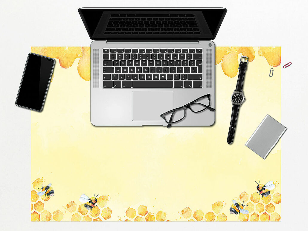 Platz für Notizen aller Art lassen die kleinen Bienen und ihre Honigwaben auf der Schreibunterlage „Honey“ vom RNK Verlag. Mit einem Format von 600 mal 420 Millimeter passt sie auf jeden Schreibtisch, die Leimung an der Unterseite verhindert, dass die 25 Blätter ausfransen. Dank undatierter Wochentage ist die fröhlich gelbe Unterlage mit den lustigen „Brummern“ unabhängig von der jeweiligen Jahreszahl nutzbar. Weitere Produkte mit dem Bienendesign zeigt der RNK Verlag auf der Insights-X.