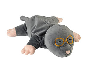 Wohlige Wärme verströmt der schlafende Maulwurf, wenn er in Mikrowelle oder Backofen erwärmt wird. Mit seinem fusselfreien Fell macht er es sich gerne auf dem Bauch seiner großen Freunde bequem und sorgt durch die naturreine Hirsekorn-Füllung gemischt mit französischem Lavendel für Ruhe und Geborgenheit.