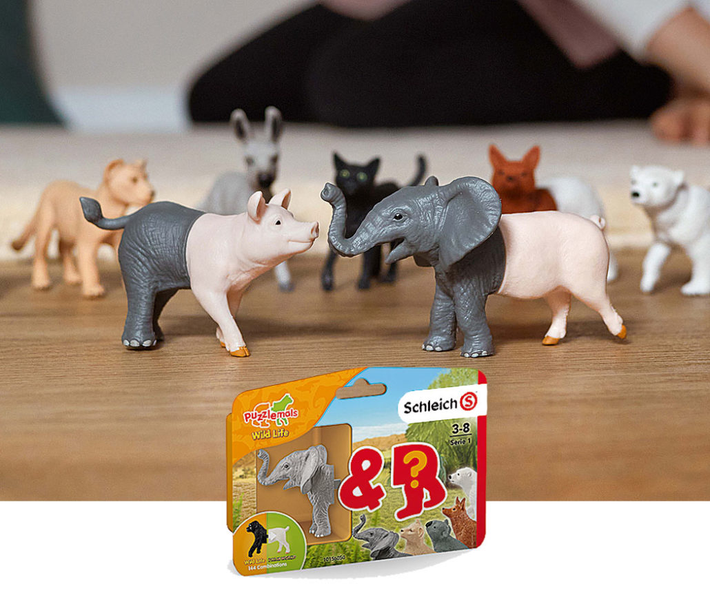 Was mag wohl ein Elehund sein? Oder ein Löwrilla? Das können Kinder jetzt mit den Puzzlemals von Schleich herausfinden. Aus verschiedenen Vorder- und Hinterteilen von Tieren aus den Themenwelten „Farm World“ und „Wild Life“ entstehen beim Zusammenstecken ganz besondere Spielgefährten.